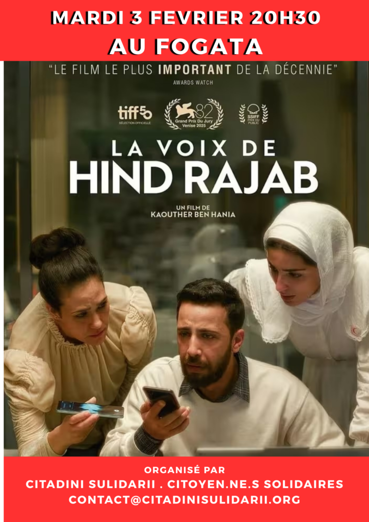 CITADINI SULIDARII propose le MARDI 3 FEVRIER à 20H 30 au FOGATA ( L’ILE ROUSSE)